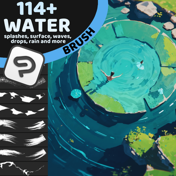 Water Brushes Pack for Clip Studio Paint | 114 Professional Artist Brushes for Painting Water, Waves, Foam, Rain, Splashes & Liquid Effects