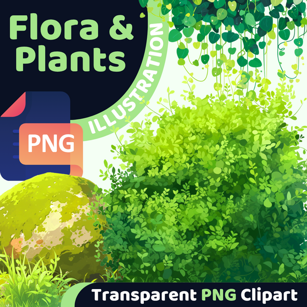 Studio Ghibli Style Nature Clipart | Transparent Flora and Plants PNG Pack | Aesthetic Greenery Illustrations for Digital Art & Design