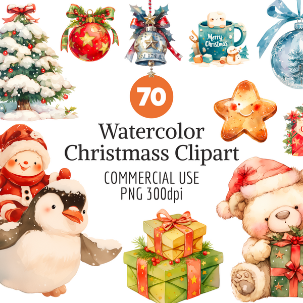 Watercolor Christmas Clipart Bundle PNG 300dpi