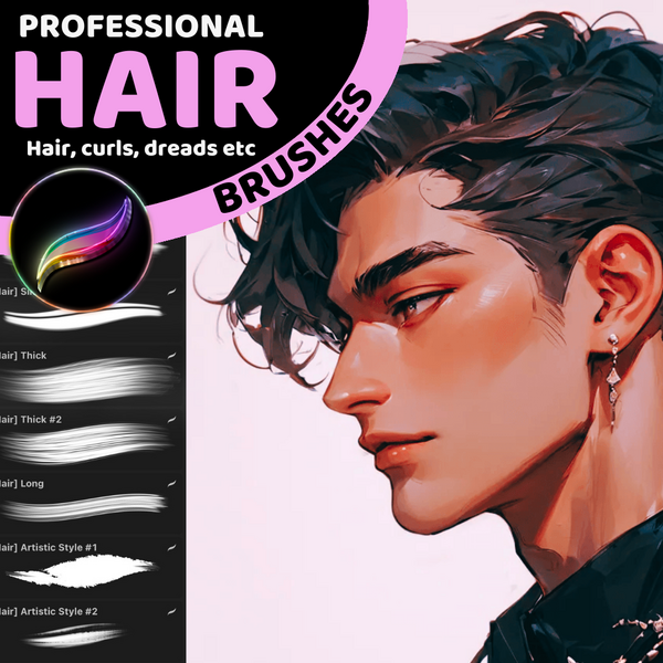 Procreate Hair Brushes Set | Strands, Curls, Ringlets, Dreads, Waves and more | Easy to use Professional Hair brushes bundle | Digital