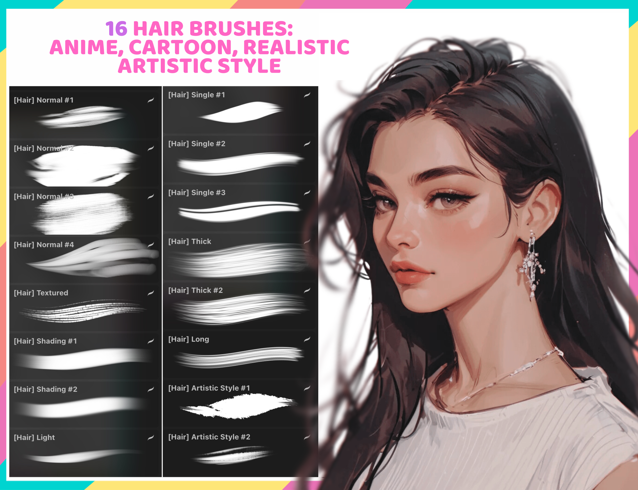 ▪️ 28 Hair brushes for Procreate total.