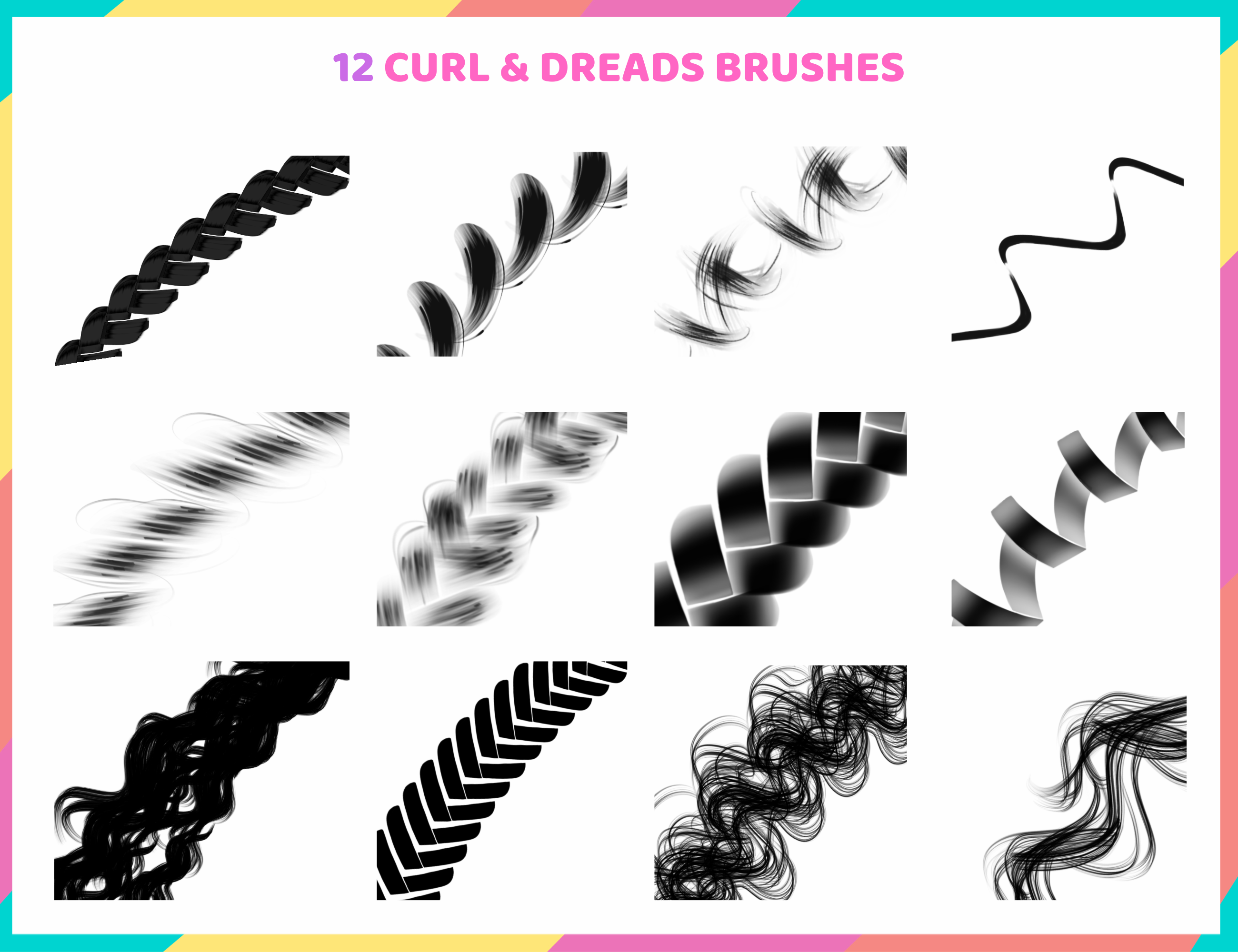 Procreate Hair Brushes Set | Strands, Curls, Ringlets, Dreads, Waves and more | Easy to use Professional Hair brushes bundle | Digital