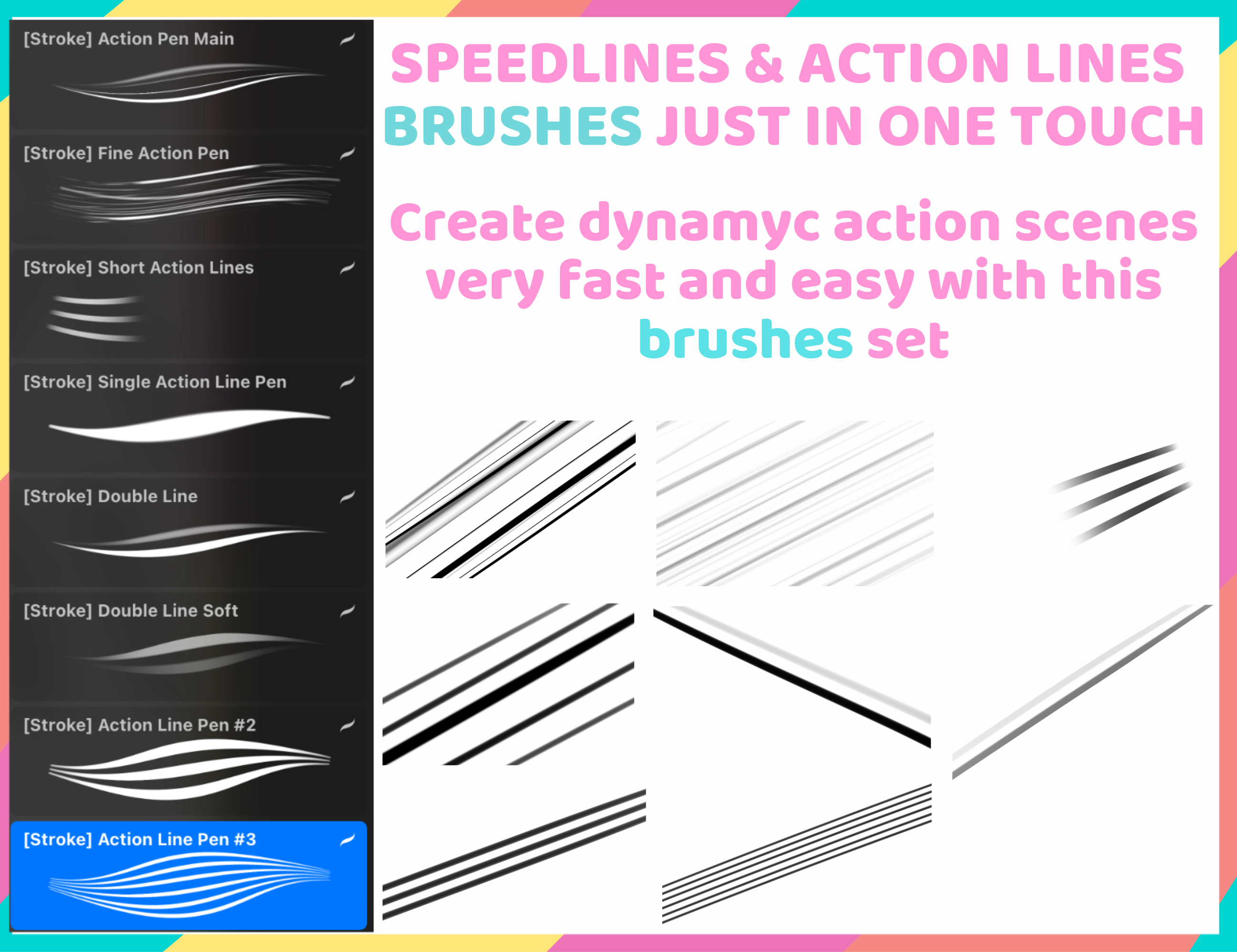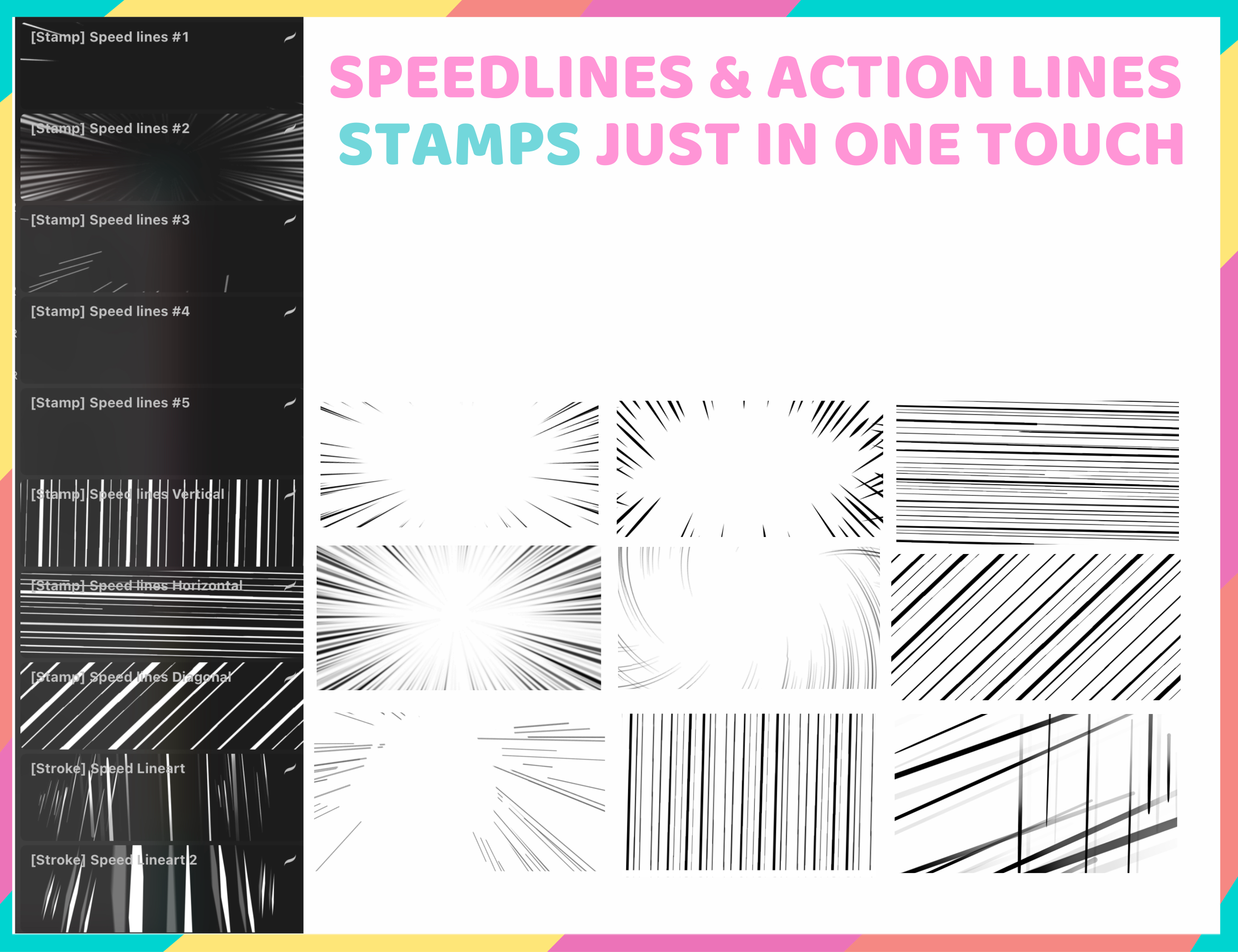 ▪️ Enhance your manga and comic art with this Procreate brush set, featuring 35 high-quality speed line and action line stamps. Perfect for adding dynamic effects, motion lines, and expressive elements to your illustrations. Ideal for artists seeking to streamline their workflow and achieve professional results in Procreate.