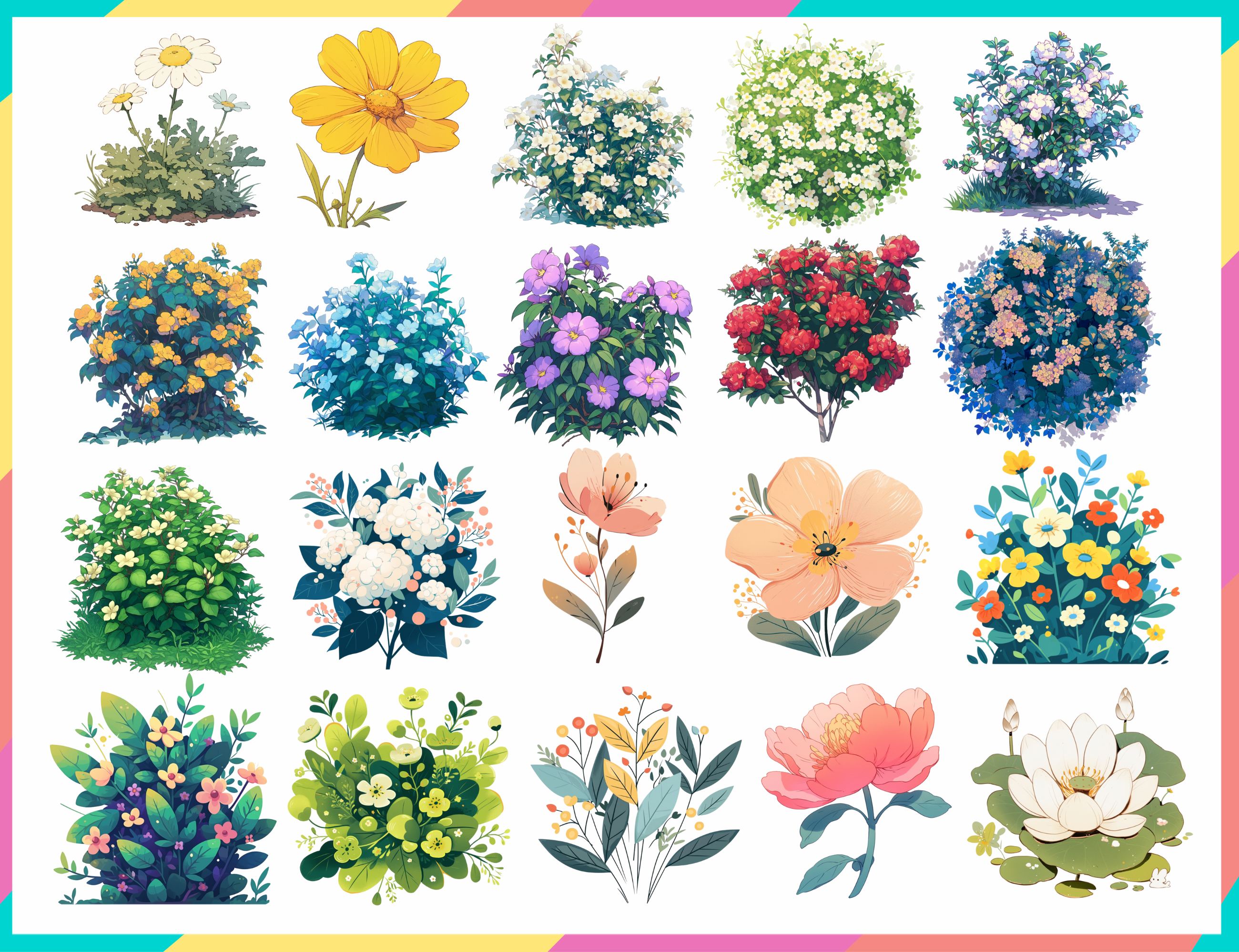 Studio Ghibli Style Nature Clipart | Transparent Flora and Plants PNG Pack | Aesthetic Greenery Illustrations for Digital Art & Design