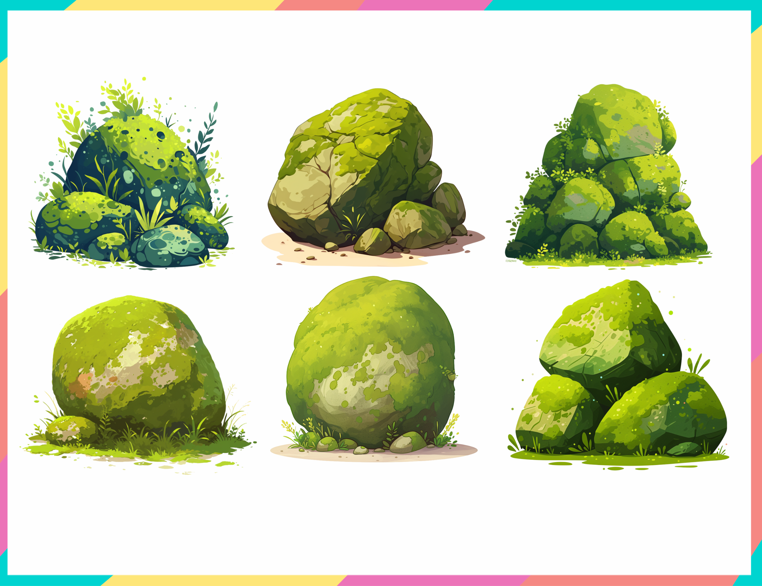 ▪️ Set of transparent PNG flora and plants illustrations: grass, bushes, trees, rocks, flowers, mushrooms, lianas. Perfect for clipart, scrapbooking, cards, stickers, printable, digital design, botanical decor, garden projects, nature elements, cartoon, environment decoration ets.