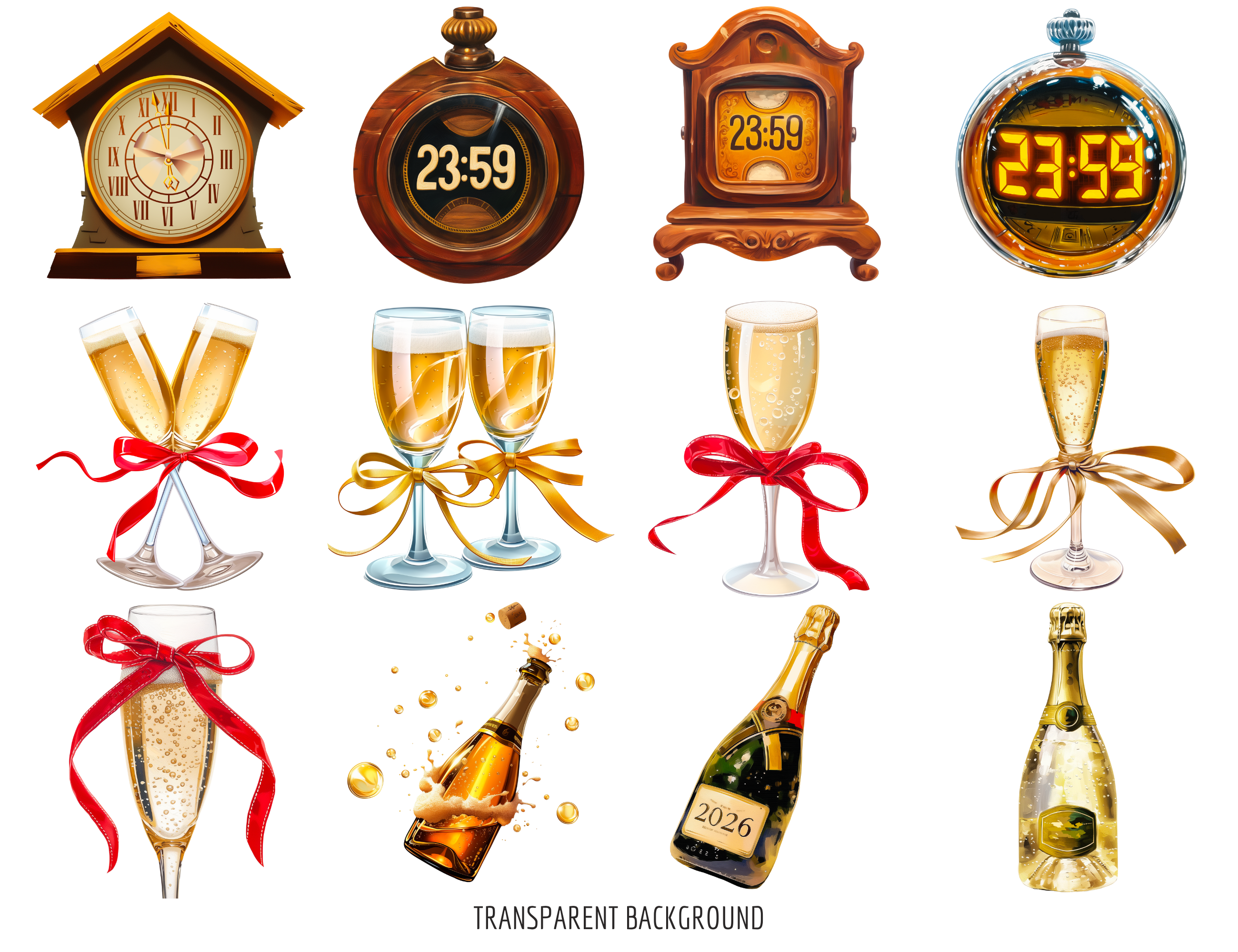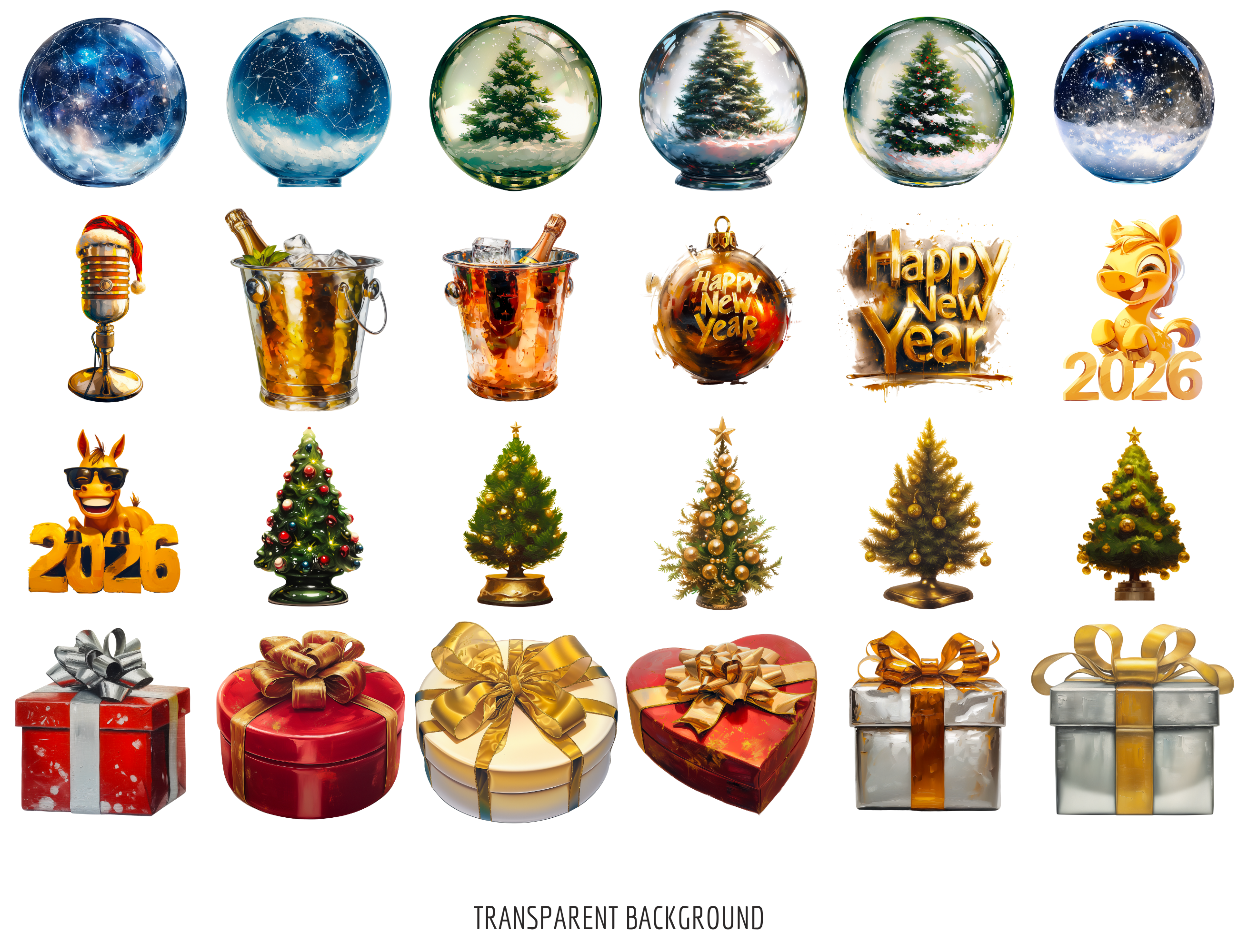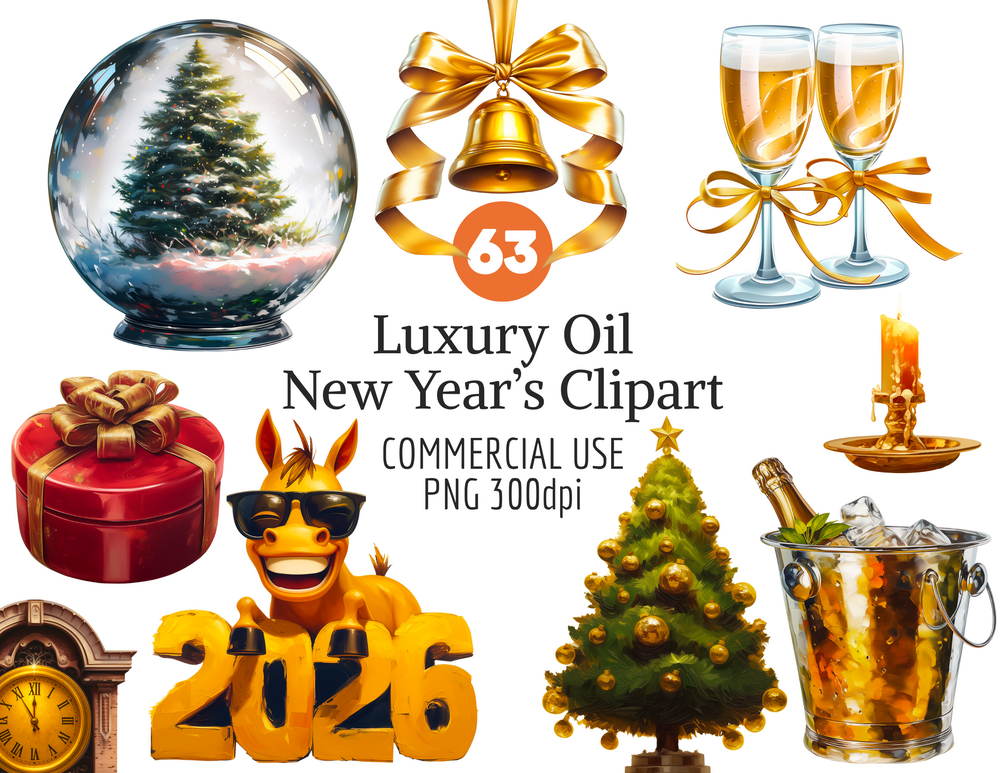 π Luxury Oil 2026 New Year Clipart Mega Bundle have PNG format with transparent backgrounds and 300 dpi. So all there clipart are printable. 63 high quality PNG Christmas clipart.